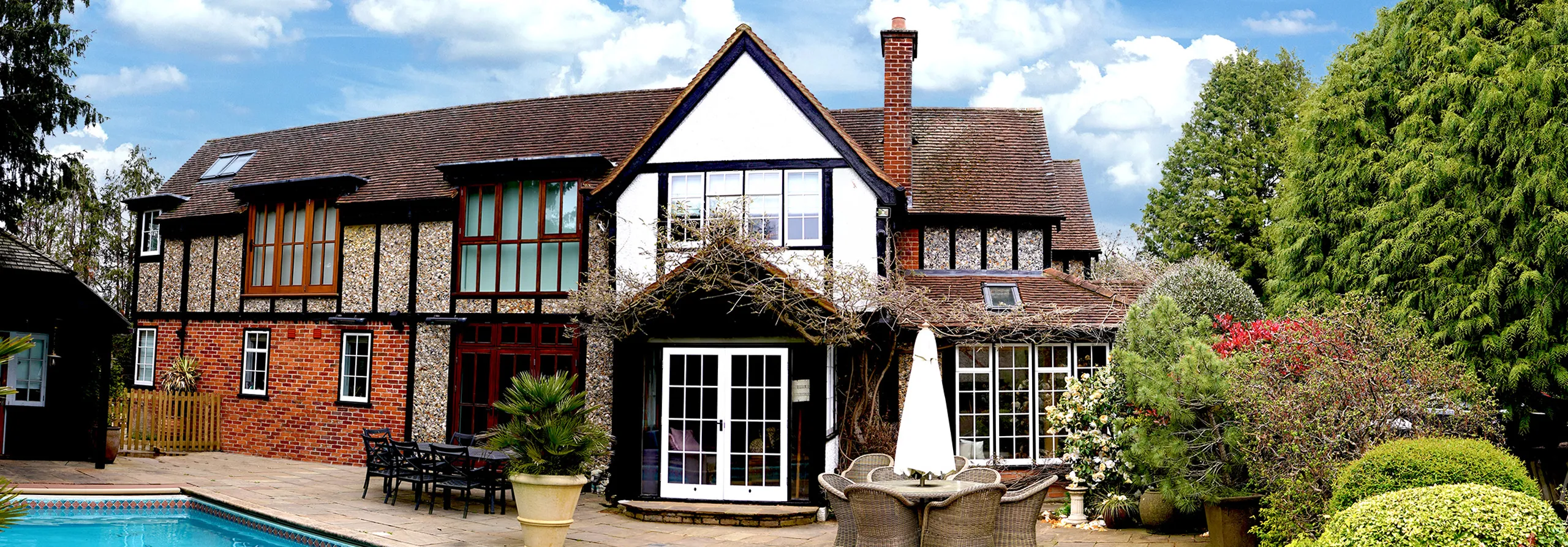 You will have access to the whole house, log cabin and pool house. There is plenty of parking space on the in-and-out drive. You can use the entire garden except for the section next to the private bungalow on the grounds.